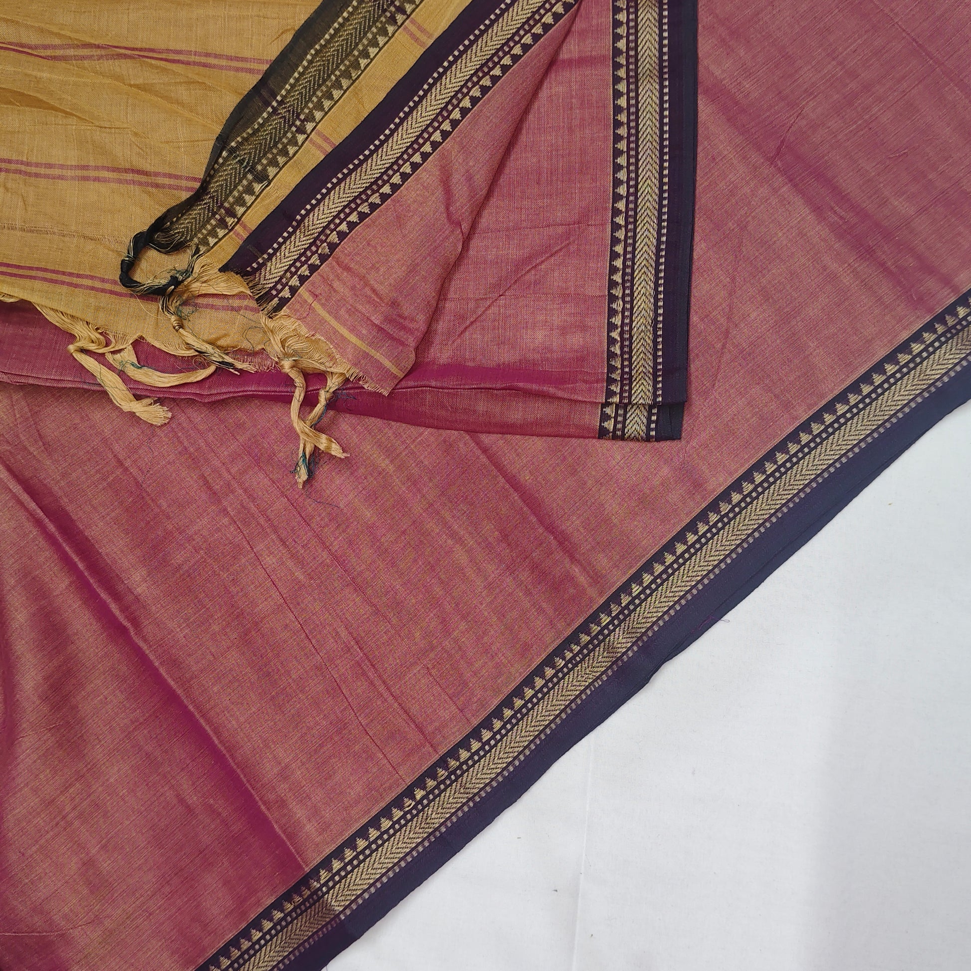 - Minor weaving irregularities are natural and add to the uniqueness of the saree